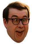Paul watches a news report of a runaway toilet paper roll on TV while mugging with his magnifying glass.